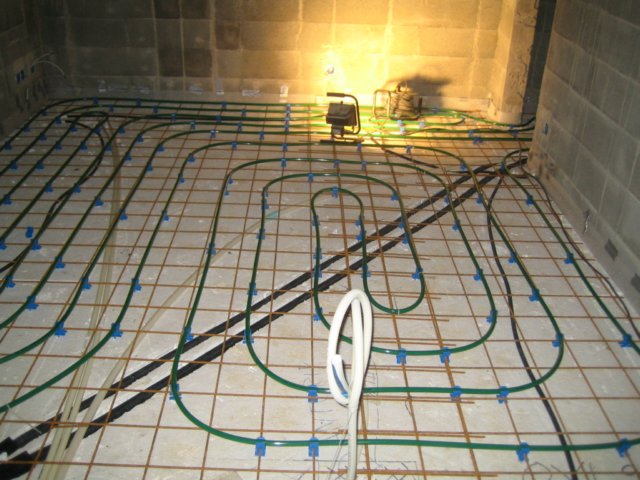 Näkymä kylpyhuoneesta työhuoneeseen ja olohuoneeseen.
