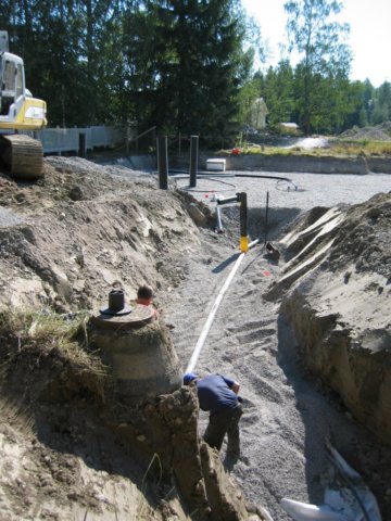 LammiTassut saapuivat tontille parhaimmilleen vesi-ja viemärikaivannon keskelle. Onneksi mahtuivat tonttiliittymään.