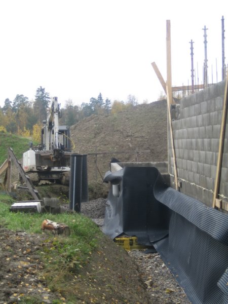Pienempi kaivinkone oli näppärä sokkelinvastaisten täyttöjen teossa.